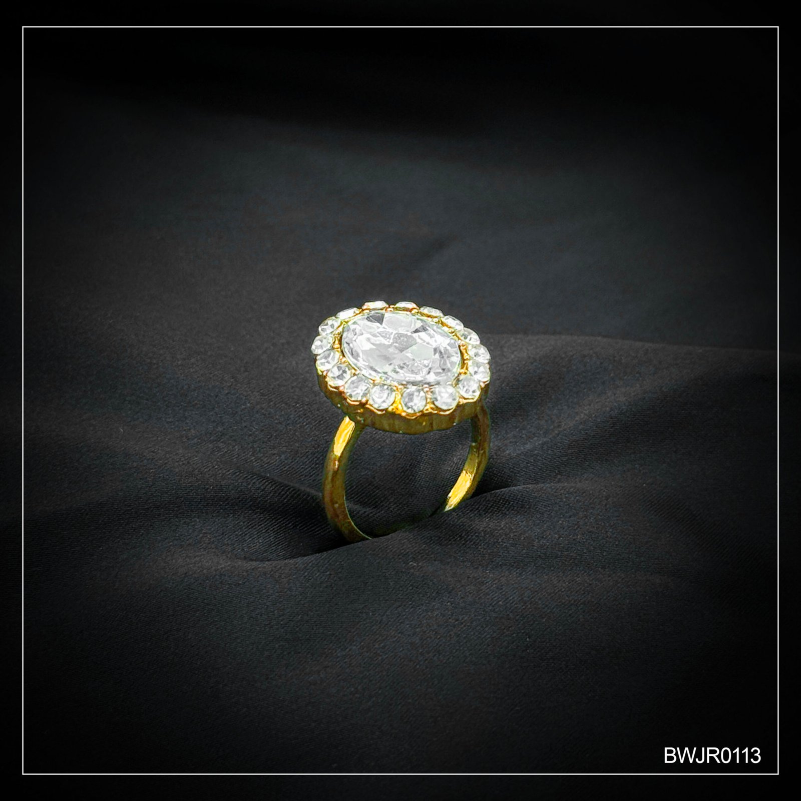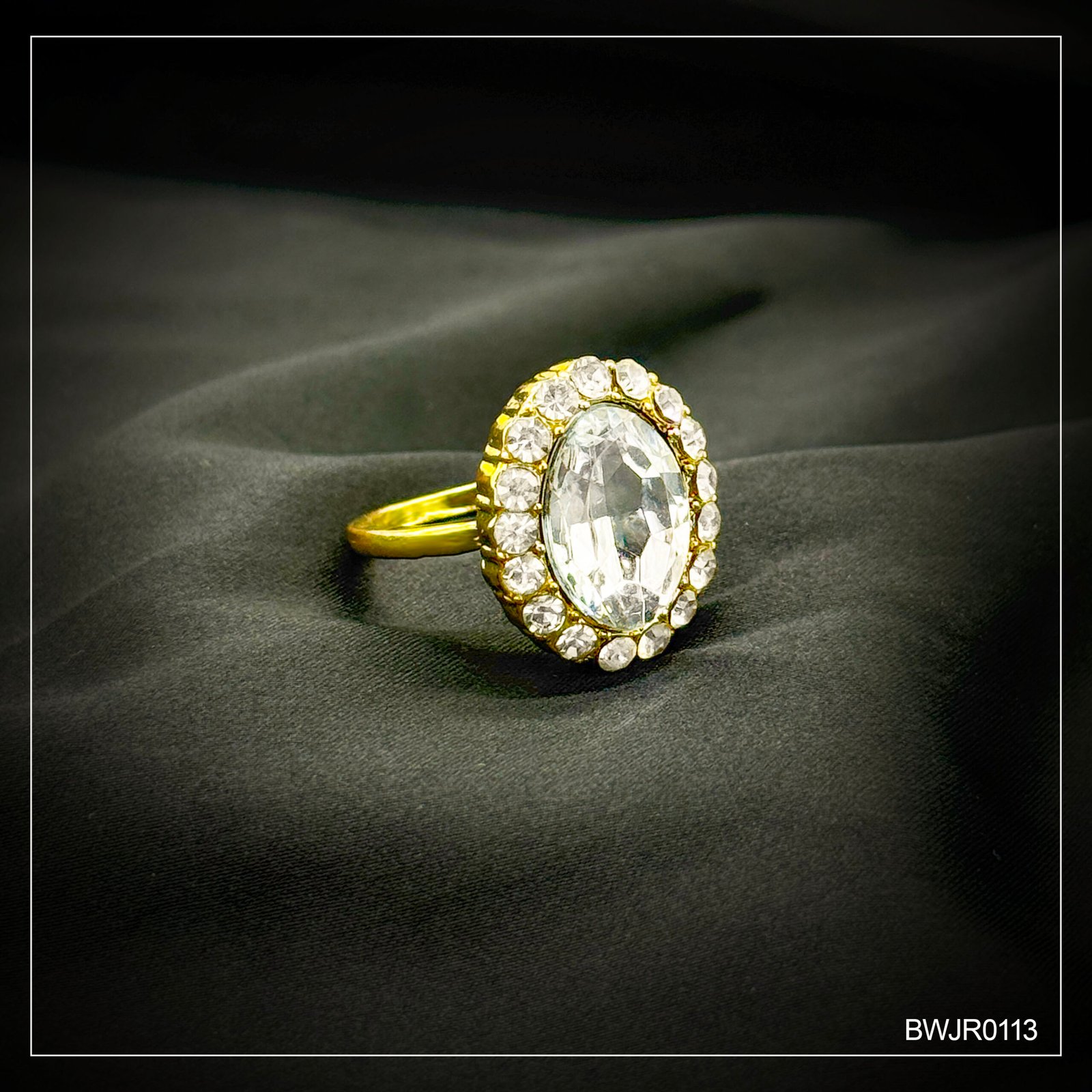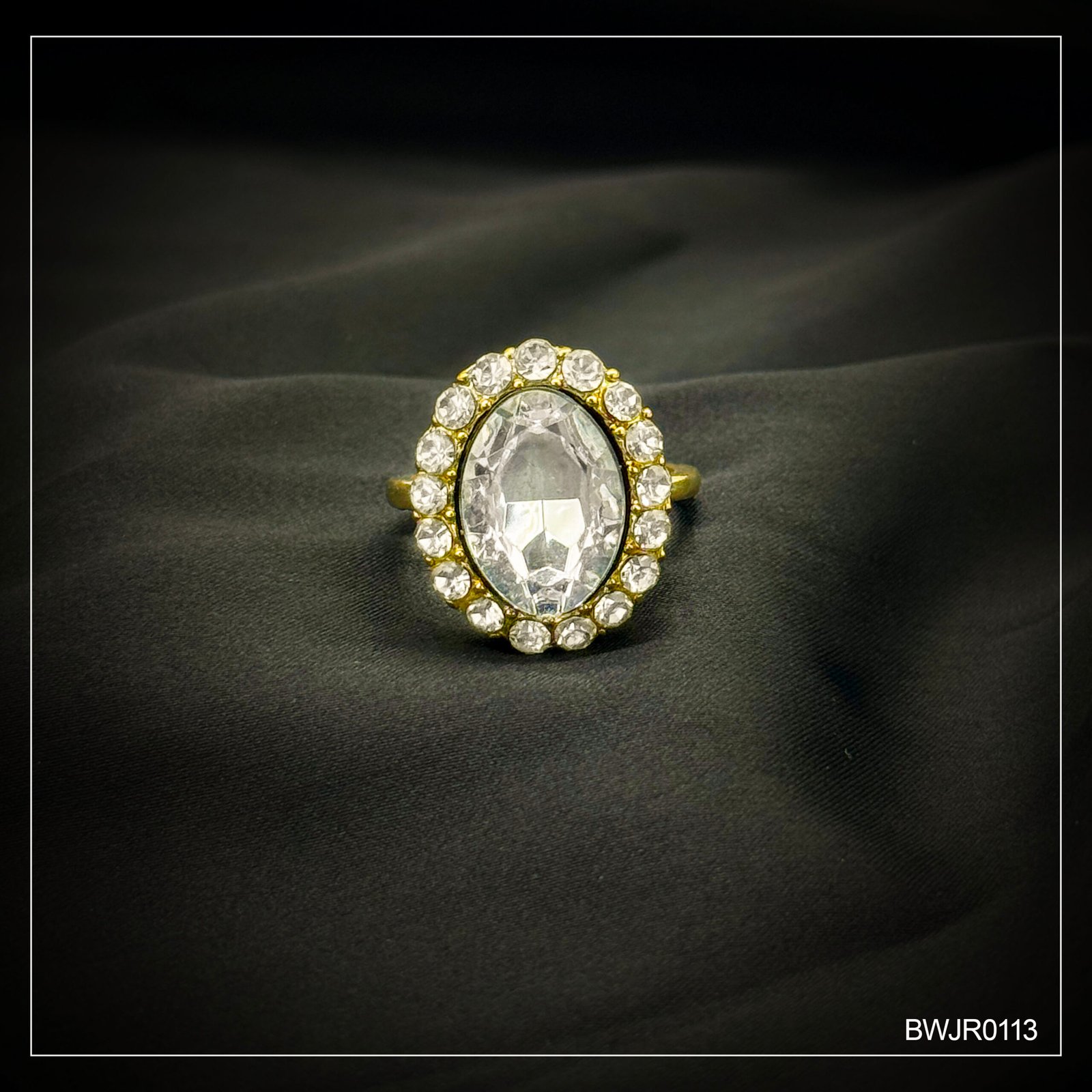 A luxurious oval crystal ring surrounded by sparkling stones, giving it a royal and timeless look. Perfect for formal occasions and statement styling.