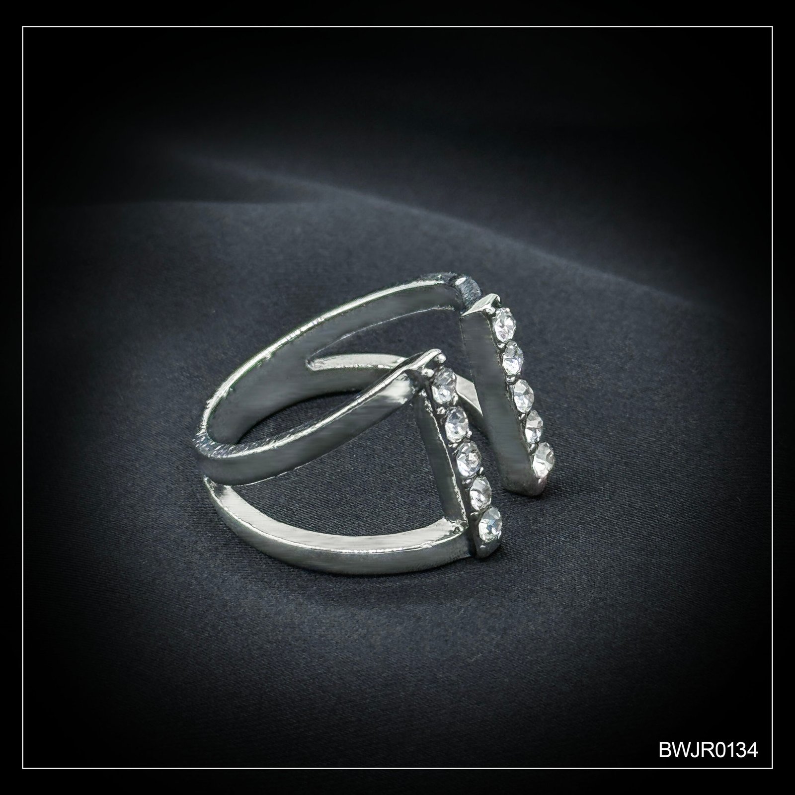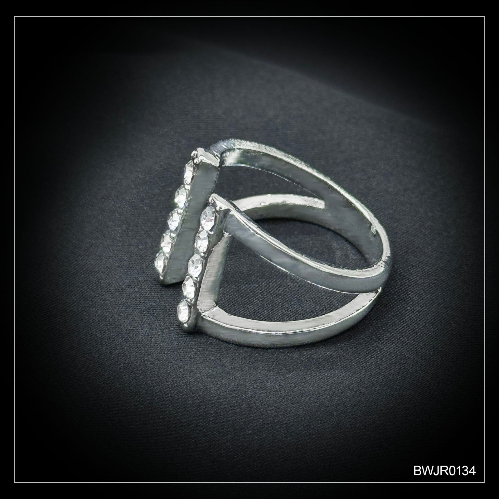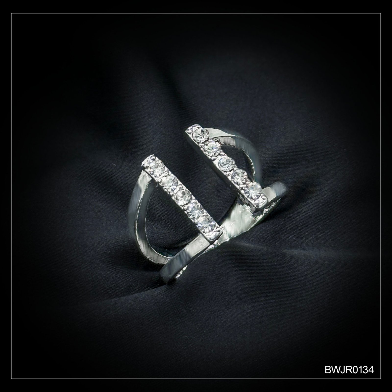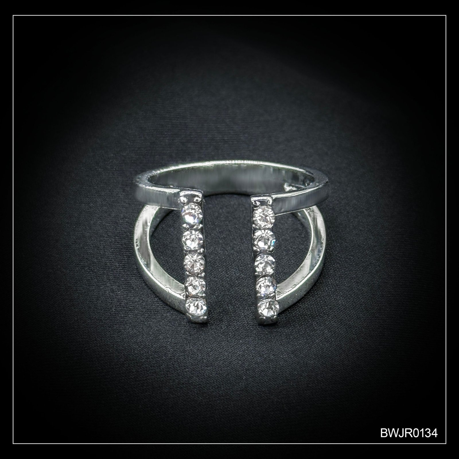 A sleek and modern open-band ring featuring twin vertical rows of sparkling cubic zirconia stones, adding a touch of elegance to any look.