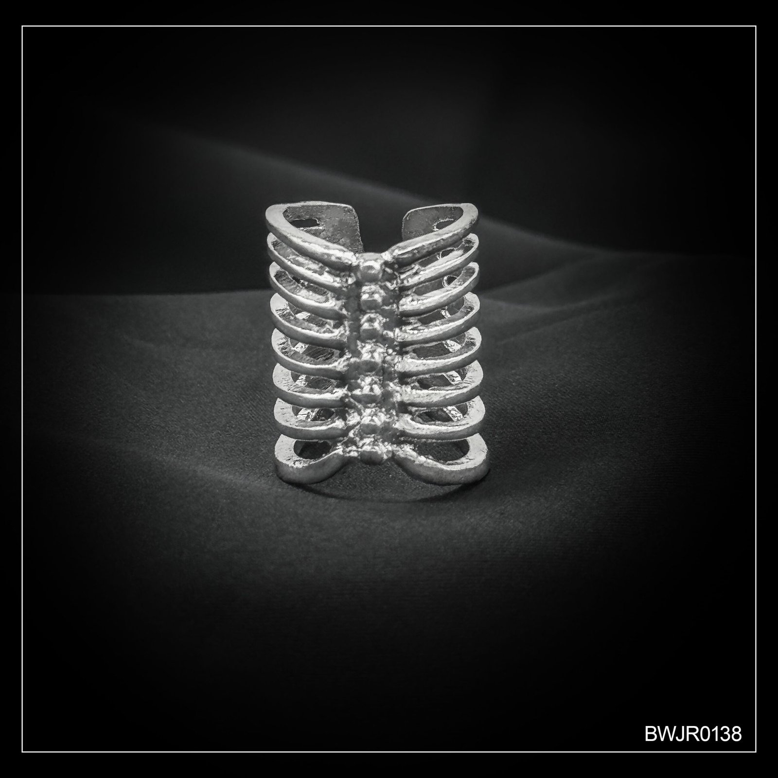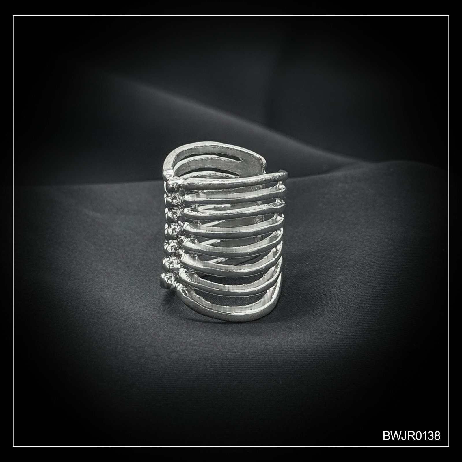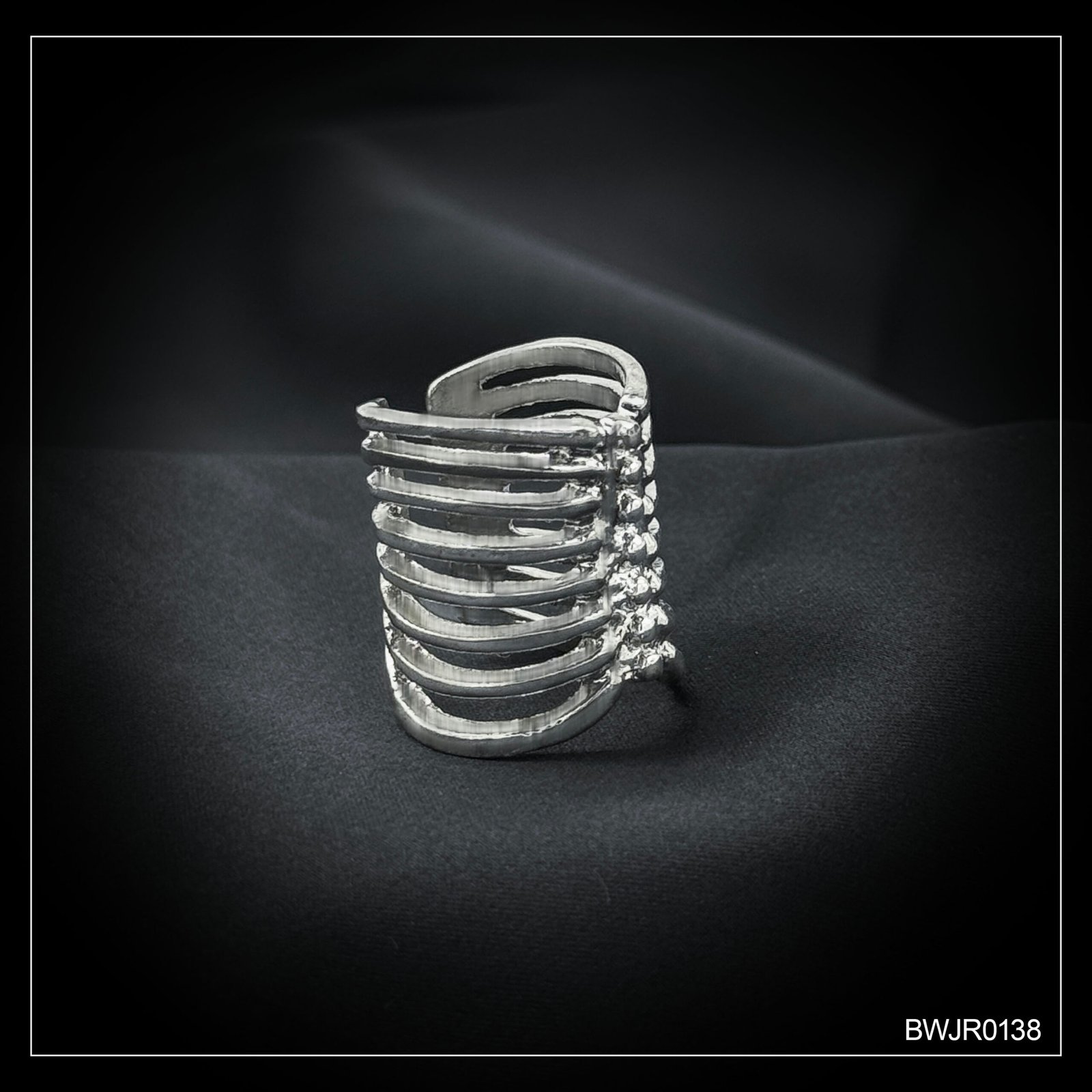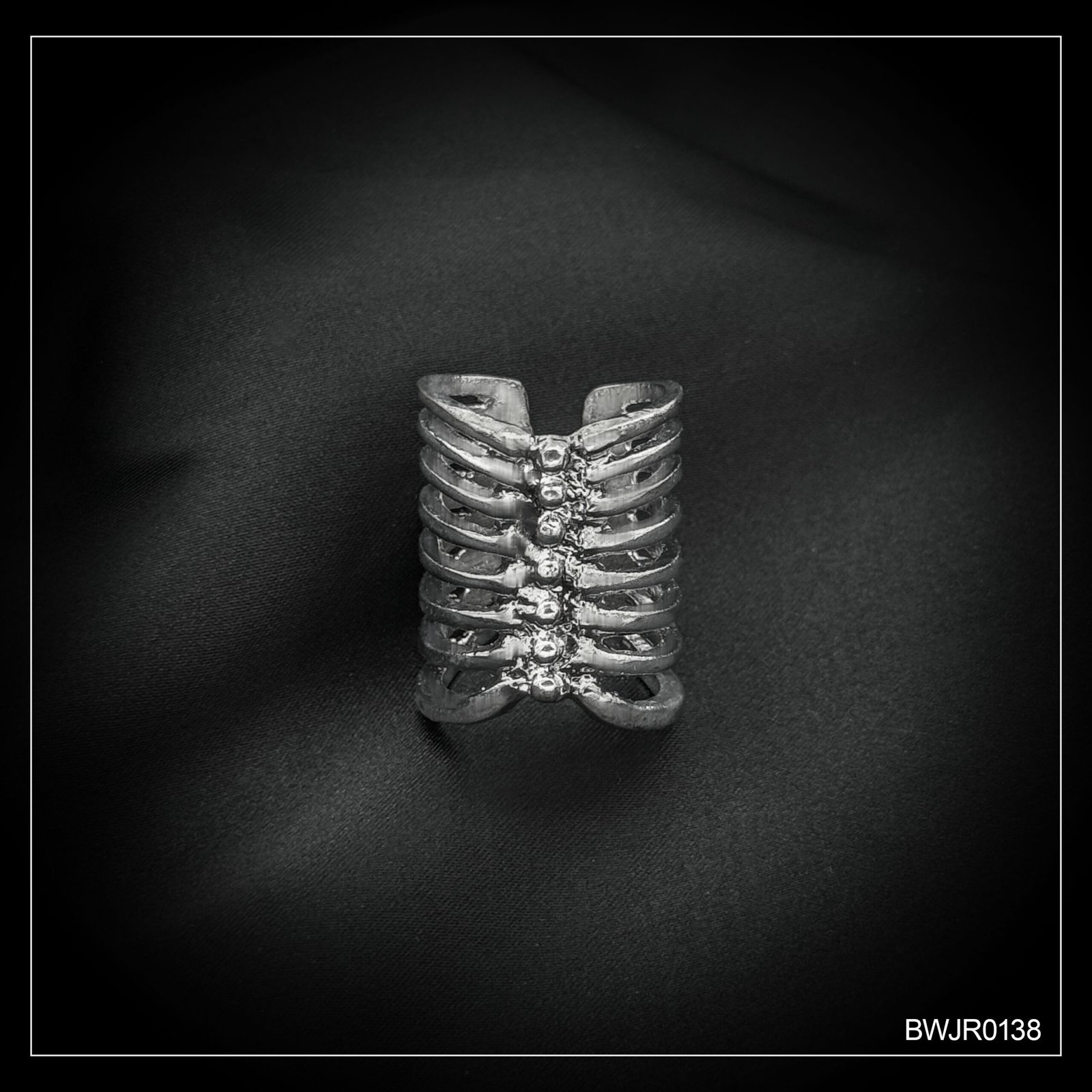 Elegant silver-tone statement ring featuring a ribbed, open-cut design that adds a bold and contemporary edge. Perfect for modern and stylish looks.