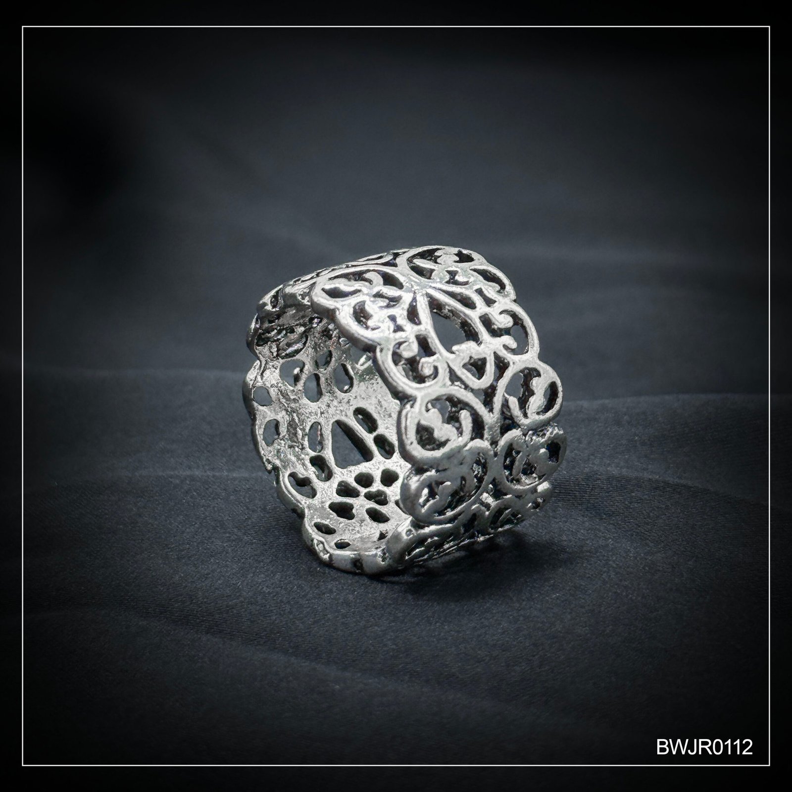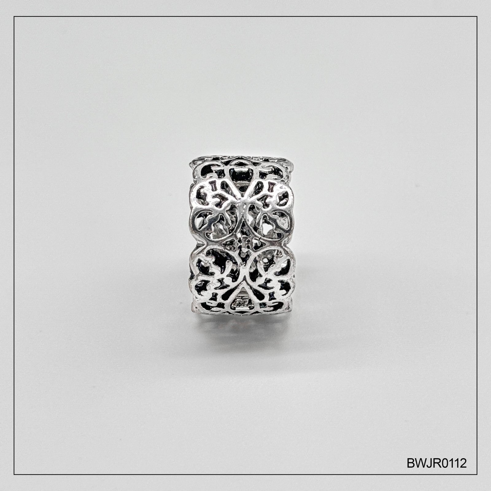 Elegant cut-out design ring featuring intricate floral patterns. Its bold, wide-band structure makes it perfect for both casual and formal styling.